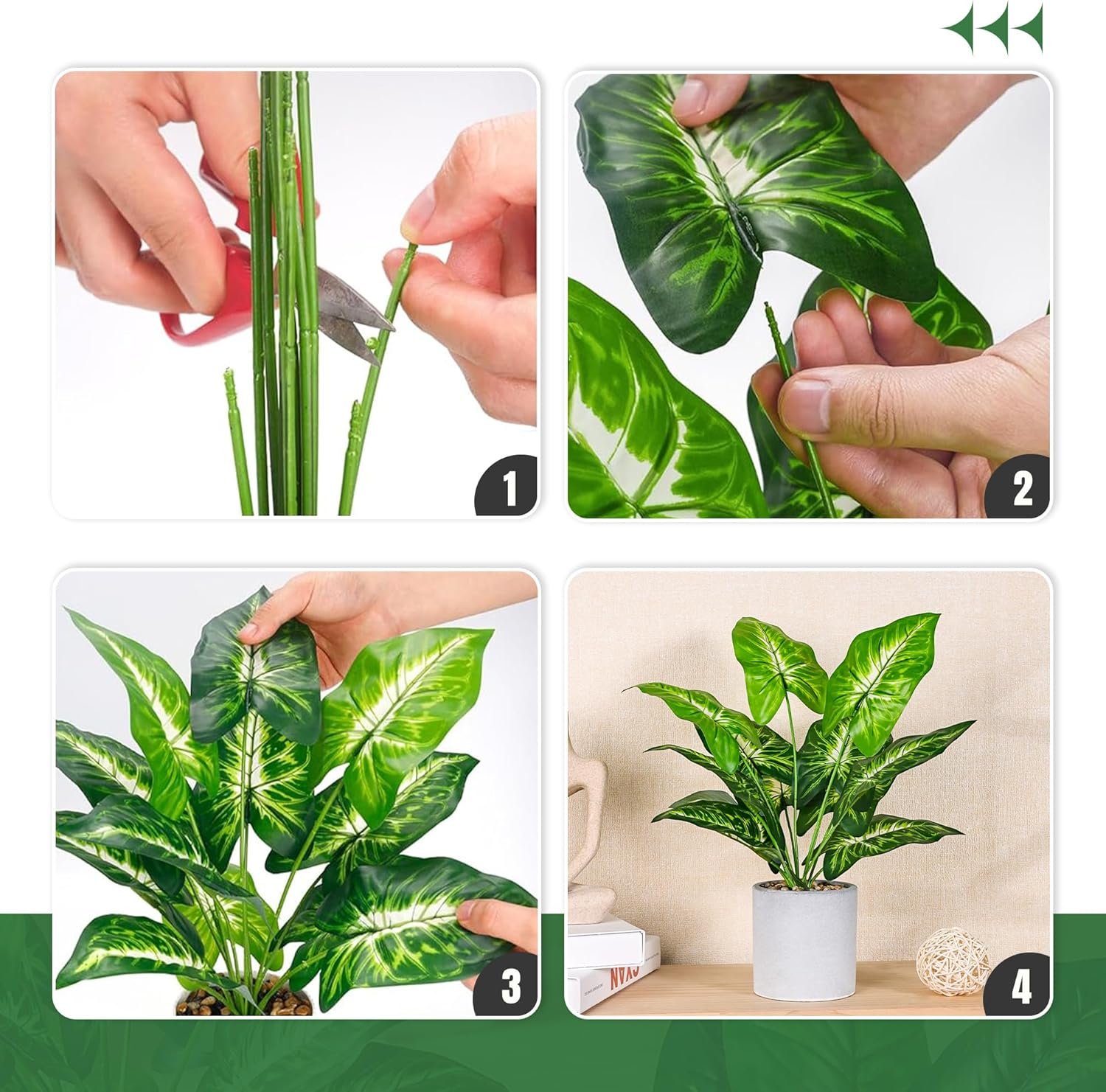 Package Includes: You will get 1 pack artificial plant which has 12 beautiful taro Leaves and contains 1 pots with plant rhizome, measures appr. 15″-16 “height in total , 2.42 lb weight.Please note that it is a DIY product. The indoor artificial plants you received need to be assembled