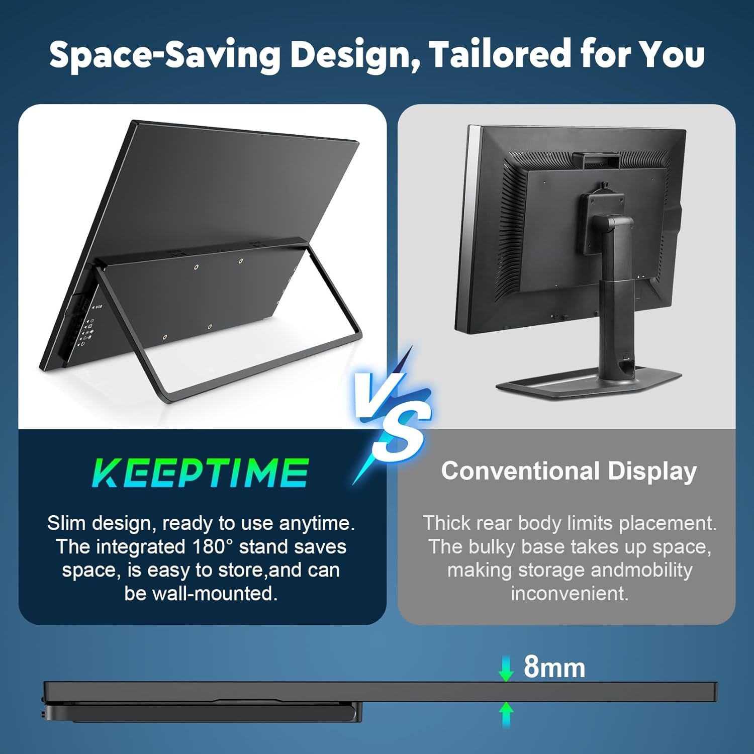 【Portable Travel Monitor】 Weighting just 4 pounds with a slim profile, KEEPTIME travel monitor easy to carry, making it ideal for business travelers, digital nomads, and multi-screen setups. We offer a one-yaear warranty and 24-hour customer service. If you have any questions, you can contact us at any time.