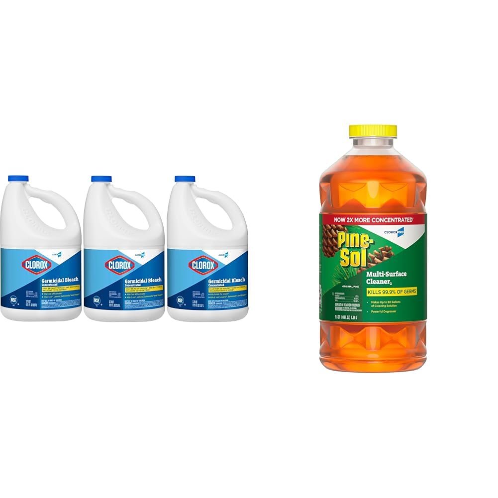 CloroxPro Clorox Germicidal Bleach, 121 Oz Pack of 3 and Pine-Sol Multi-Surface, All-Purpose Cleaner, 2x Concentrated Formula, Original Pine, 80 Fl Oz (Package May Vary)