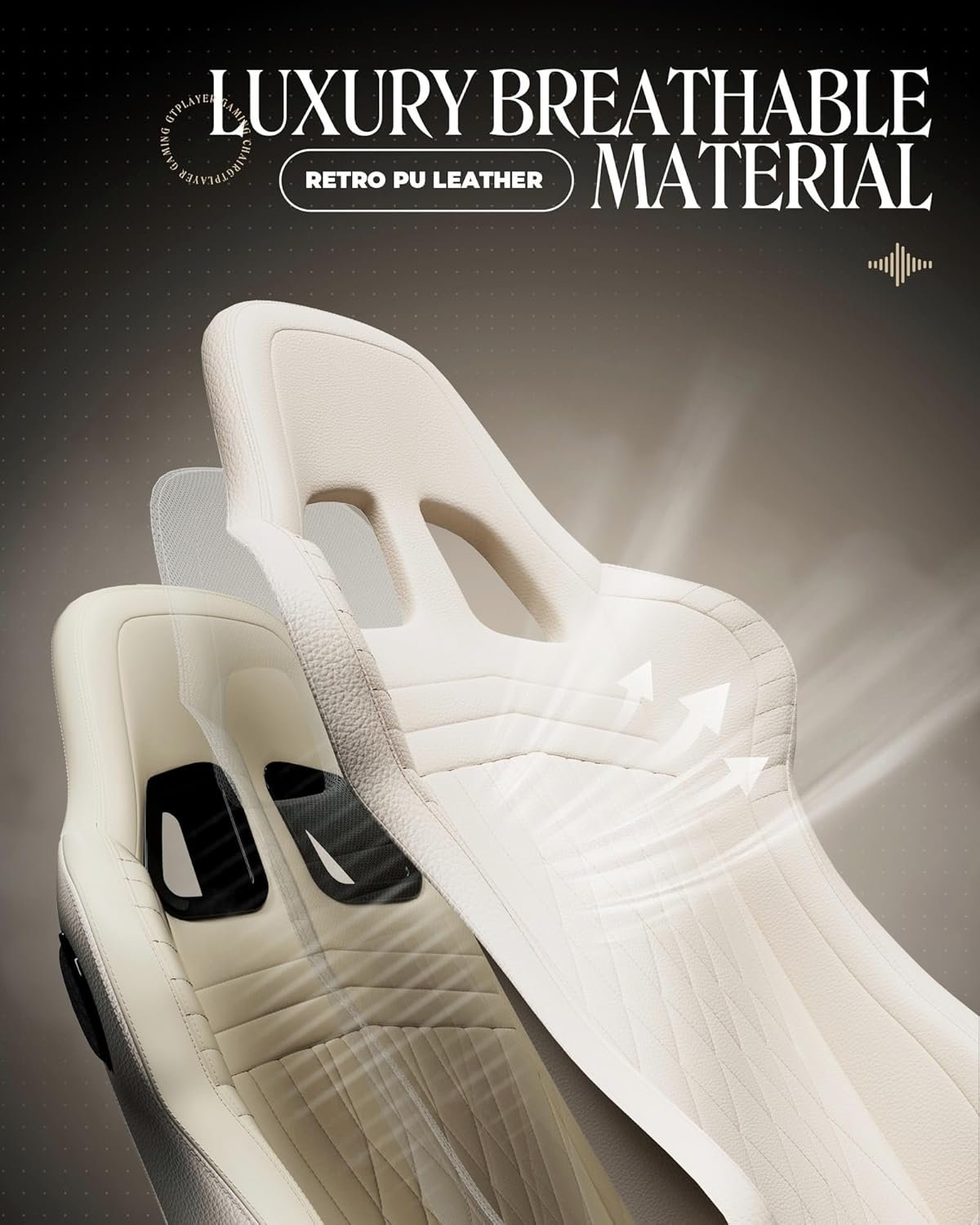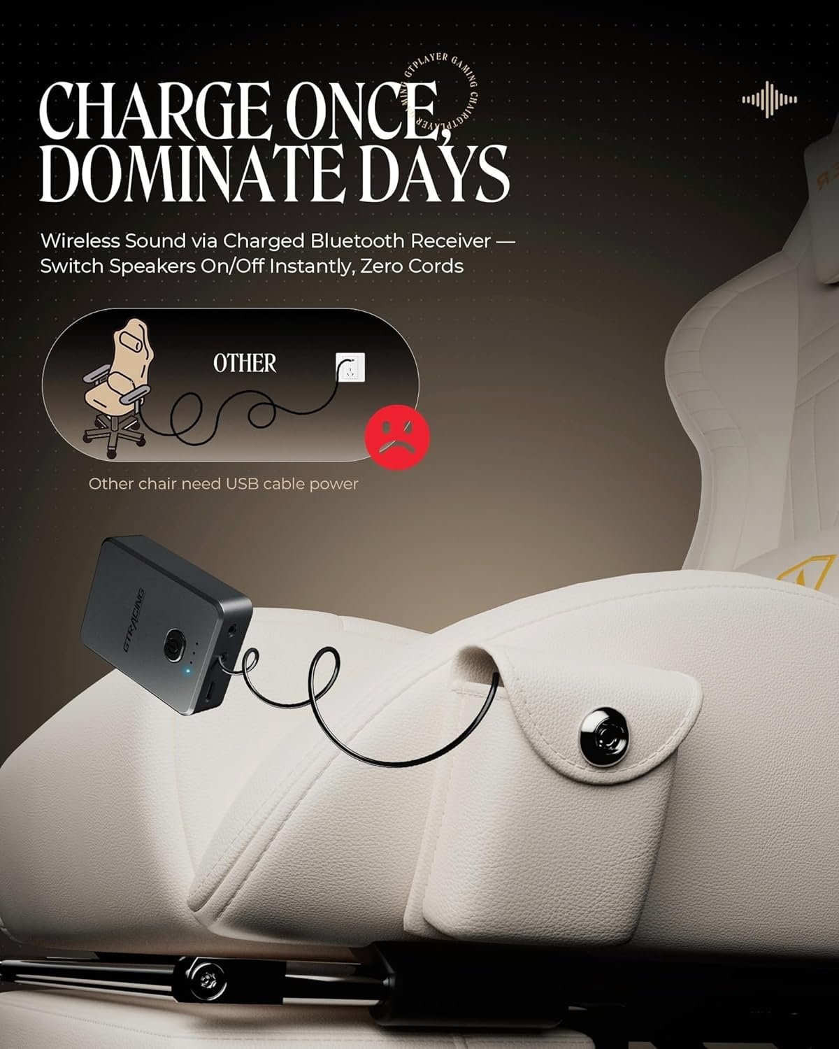 GTPLAYER Gaming Chair with Speakers, Video Game Chairs with Footrest, PC Gamer Chairs for Adults – Padded High Back Ergonomic Reclining Silla Gamer, Linkage Armrest, Ace Pro, Ivory