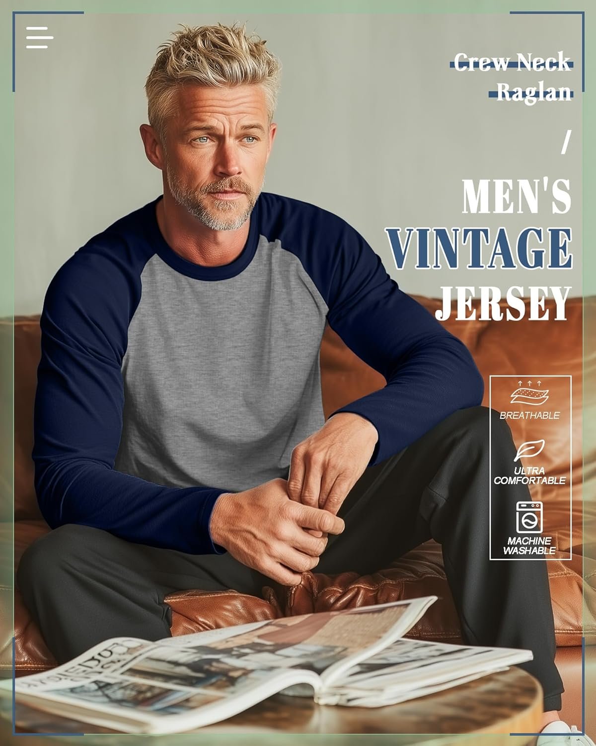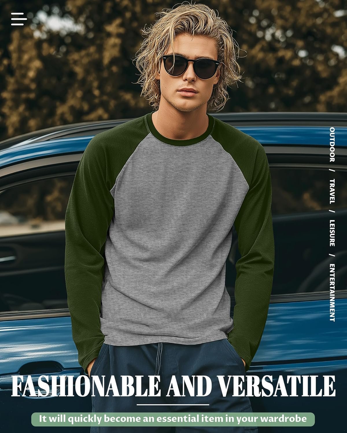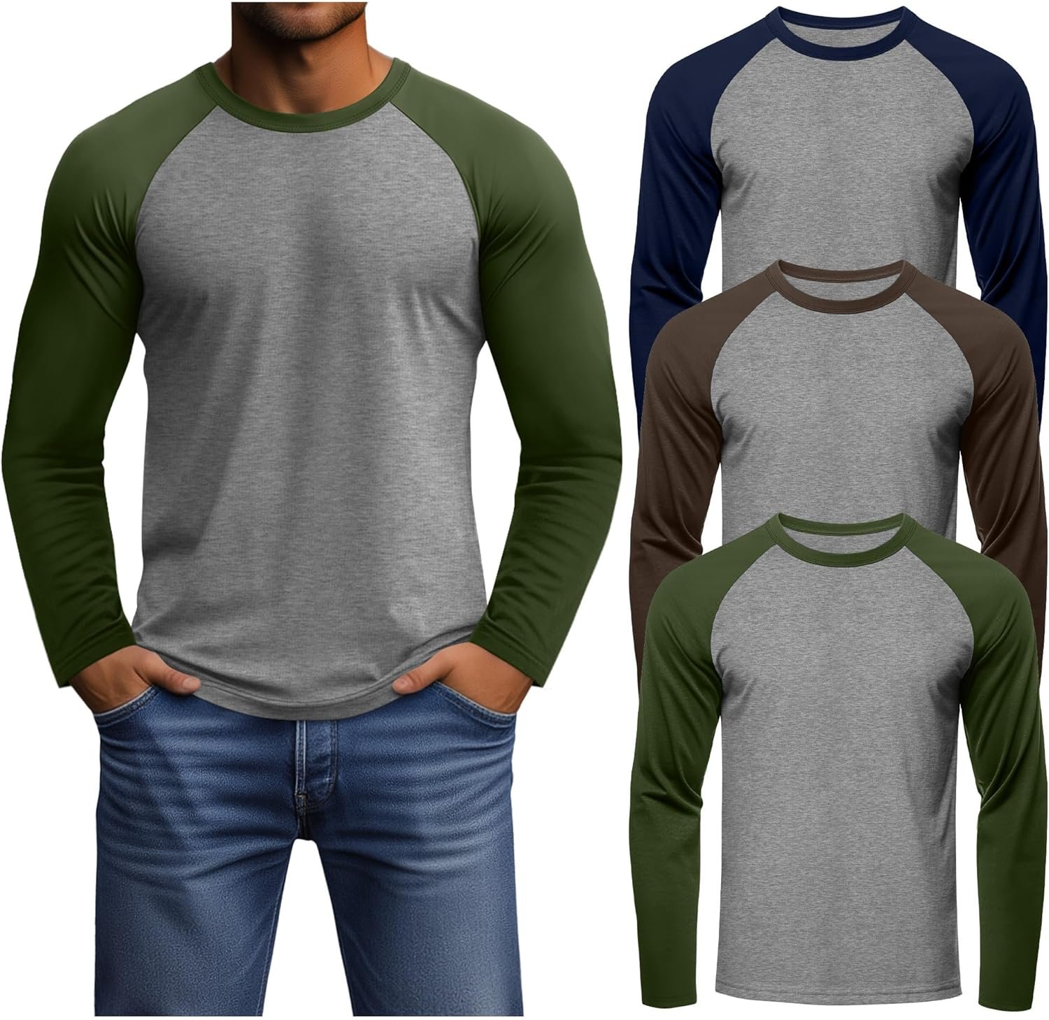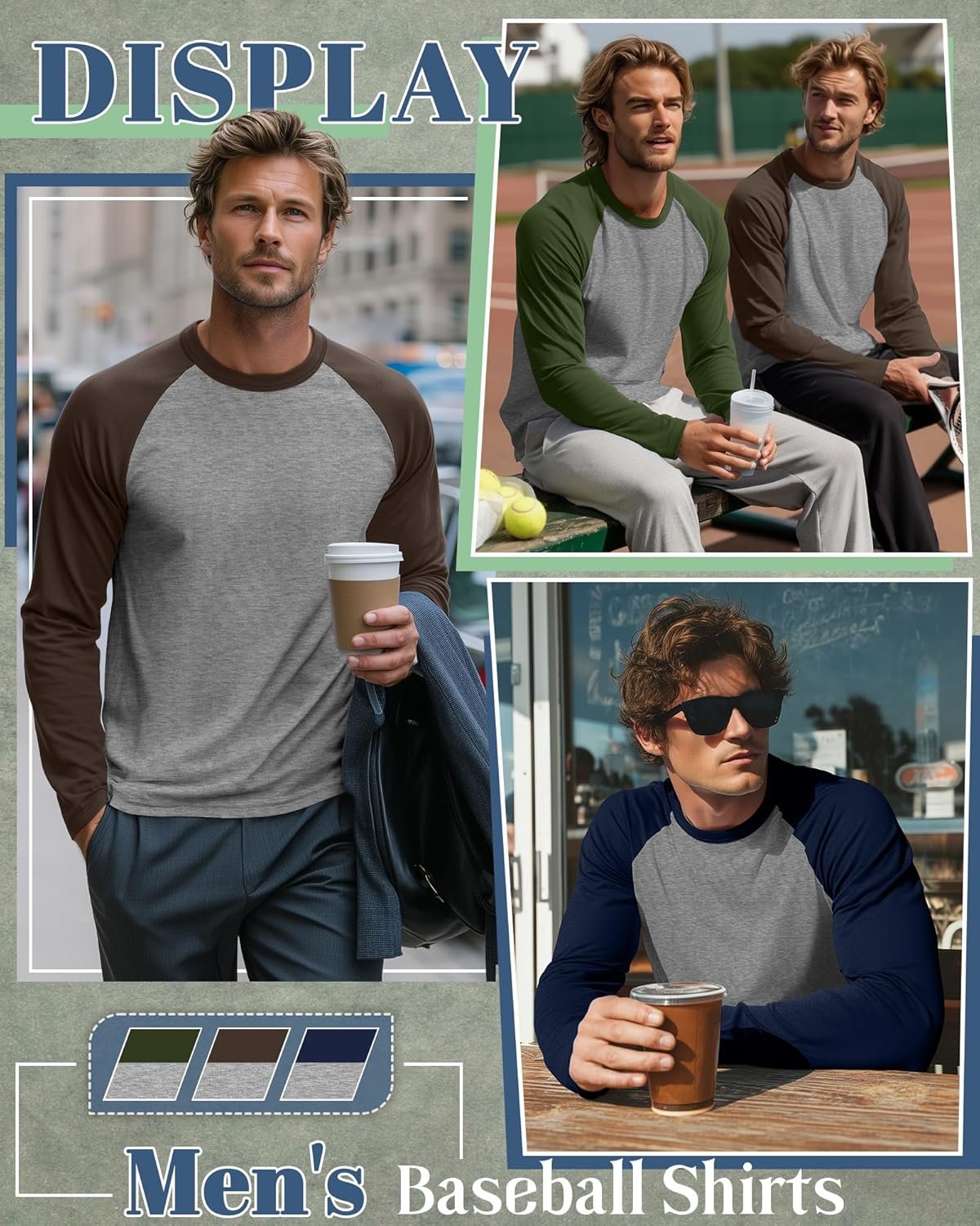 Huukeay 3 Pack Men’s Long Sleeve Baseball Shirts, Crew Neck Raglan Cotton Blend Casual Vintage Jersey Sport Tee Tops