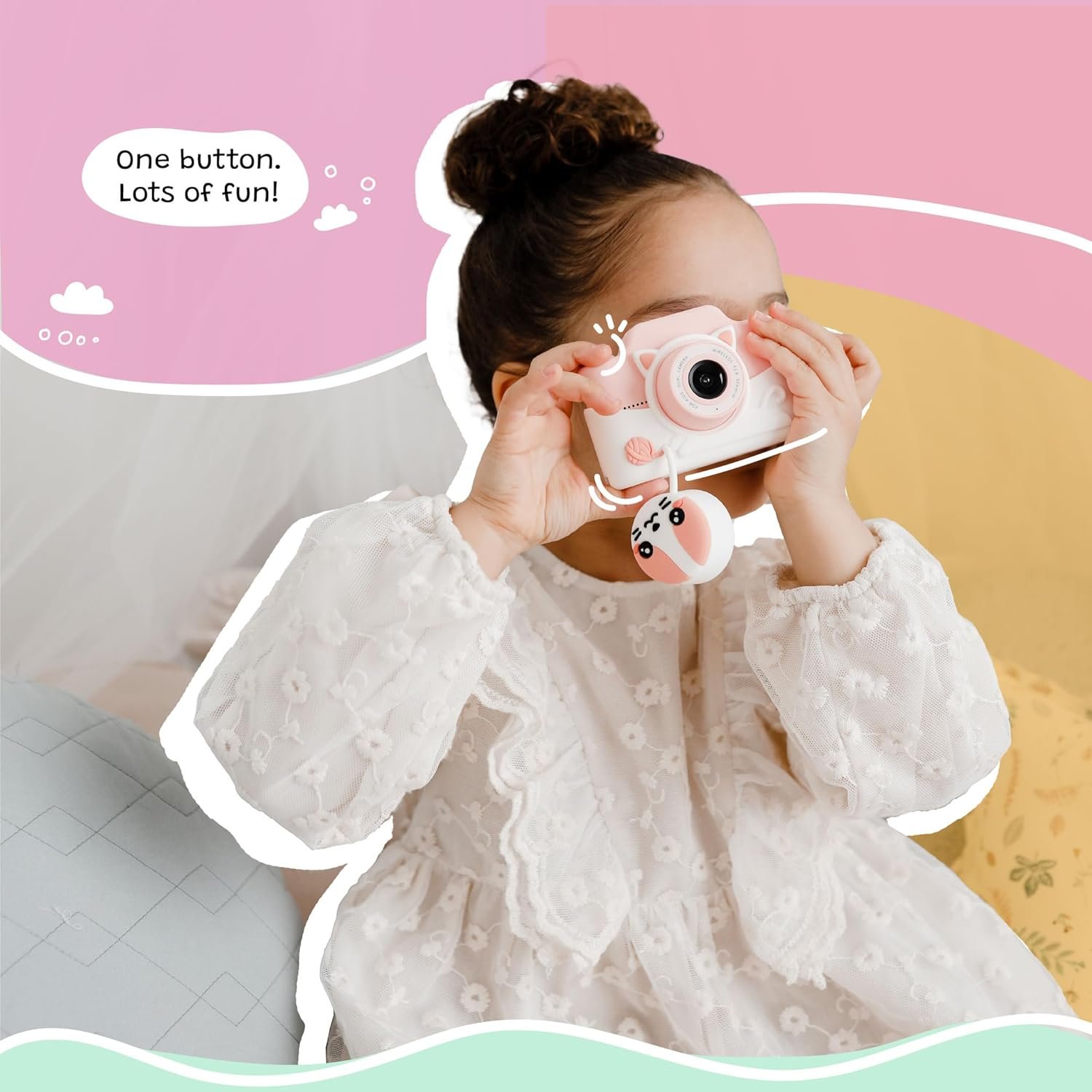 KID-FRIENDLY DESIGN: Featuring a cute, brightly coloured cat animal design, this innovative children’s digital camera will elicit the greatest squeals of delight from 3-9 years old kids. A large 3″ IPS touchscreen with a simple UI makes it easy for little hands to build confidence adjusting the various modes and settings independently. The soft neck strap doubles as a charging cord.