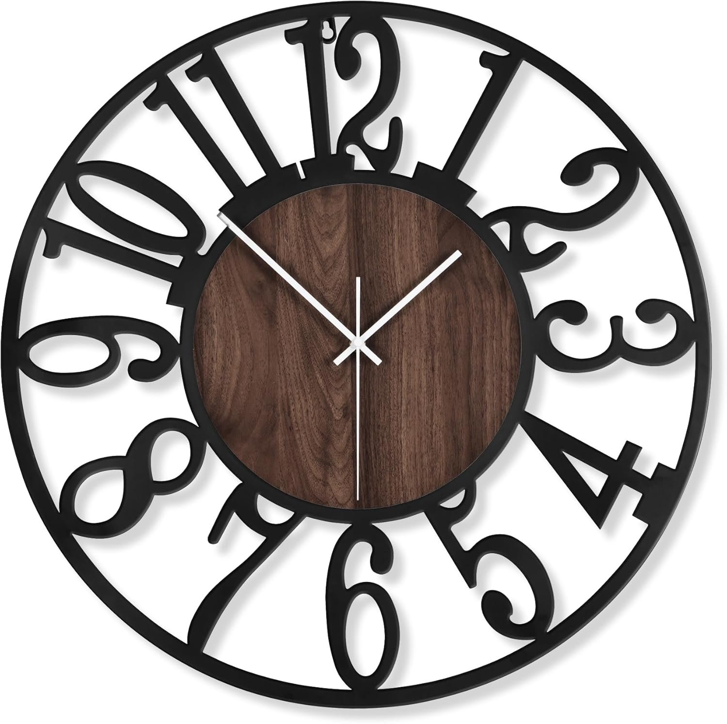 [Easy to Read] Round black metal number, wood wall clock is easy to read bold numbers on the surface with white hands. Make this oversized metal clock the focal point of any room! Also, perfect for decorating any home decoration style.