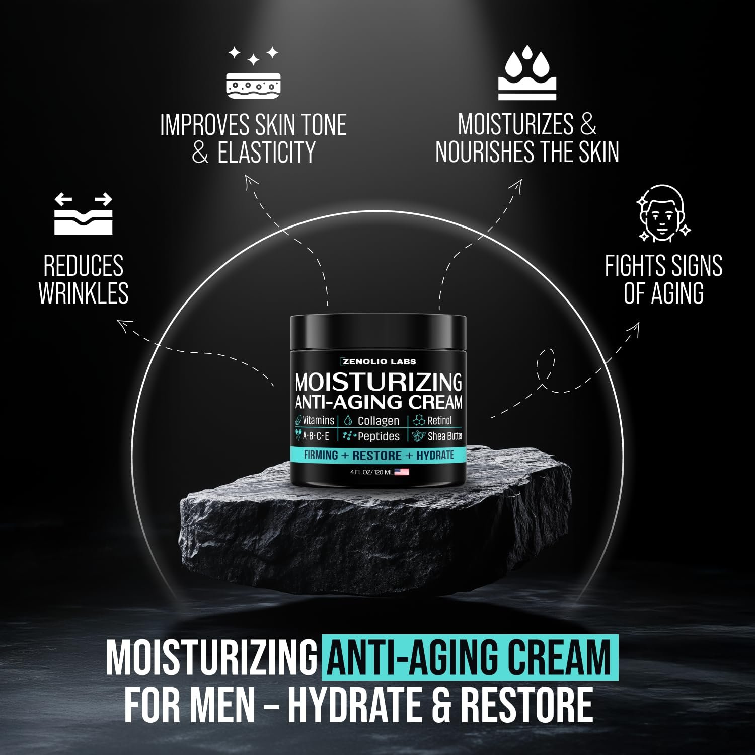 Mens Face Moisturizer Cream – Anti Aging & Wrinkle Face Cream – Mens Facial Moisturizer – Retinol, Collagen, Peptides, Shea Butter, Vitamins E & A – Facial Skin Care Eye Lotion – Day & Night – 4 oz