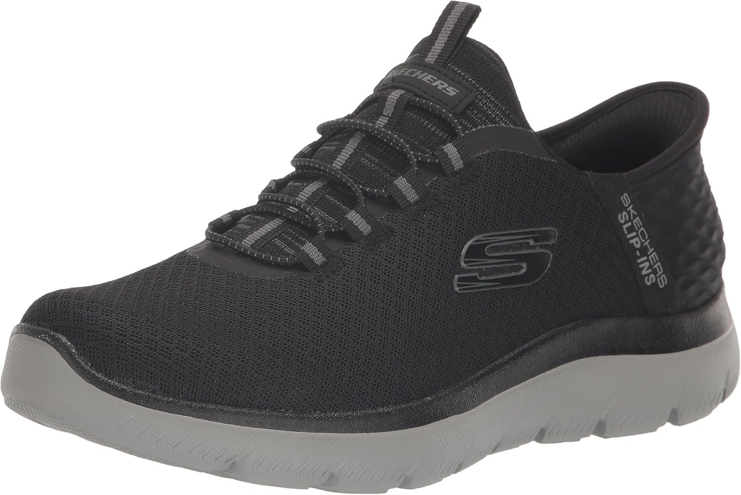 Step into easy-wearing comfort with Skechers Hands Free Slip-ins™: Summits – High Range. Along with our Exclusive Heel Pillow™ holds your foot securely in place, this vegan style features a unique pop-up Skechers Slip-ins™ molded heel panel, a mesh upper with fixed laces, and a cushioned Skechers Air-Cooled Memory Foam® insole.