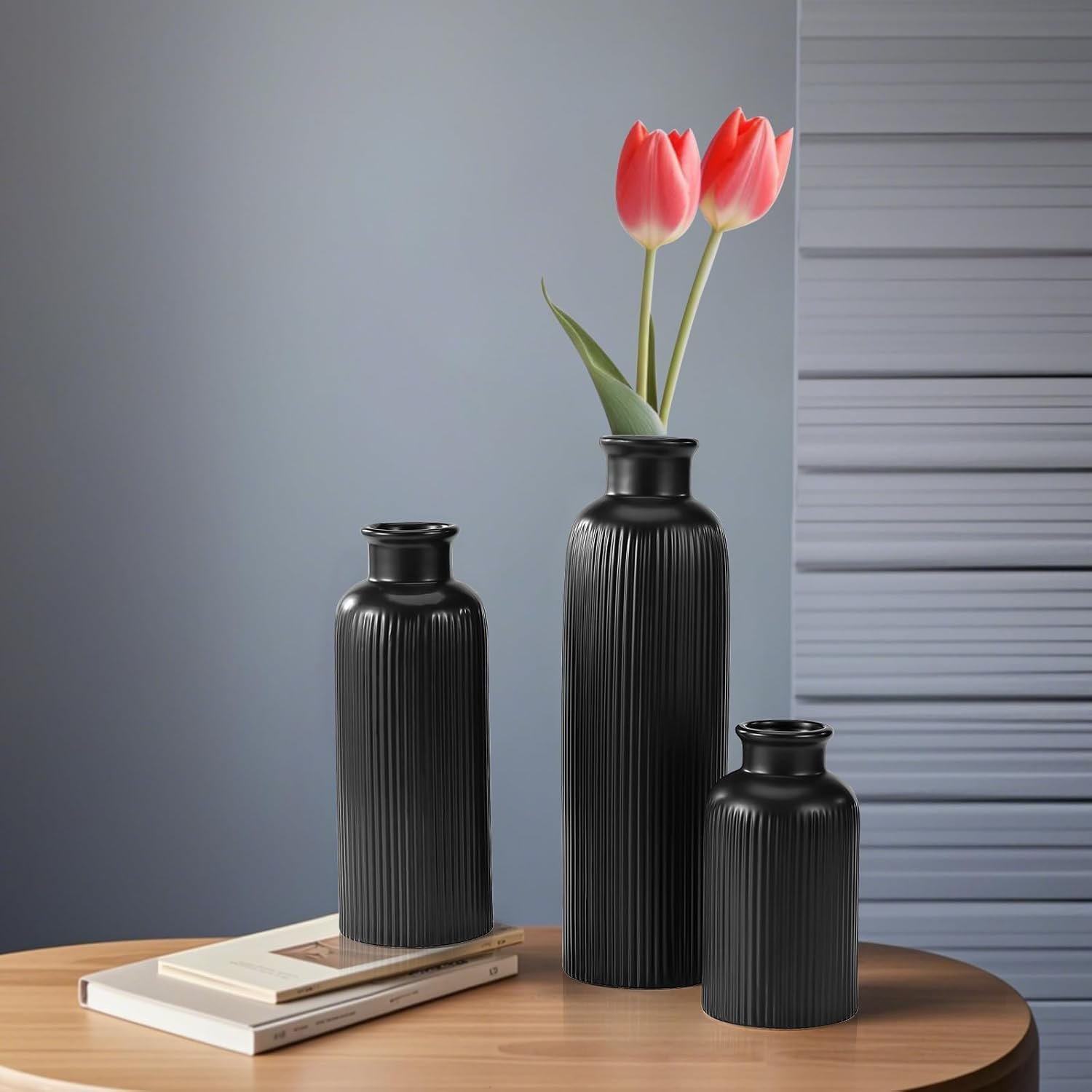Black Ceramic Vase Set, Farmhouse Decor, Home Decorative Vase, Vases For Your Kitchen, Bedroom, Office, Living Room, Bathroom & Shelf Centerpiece