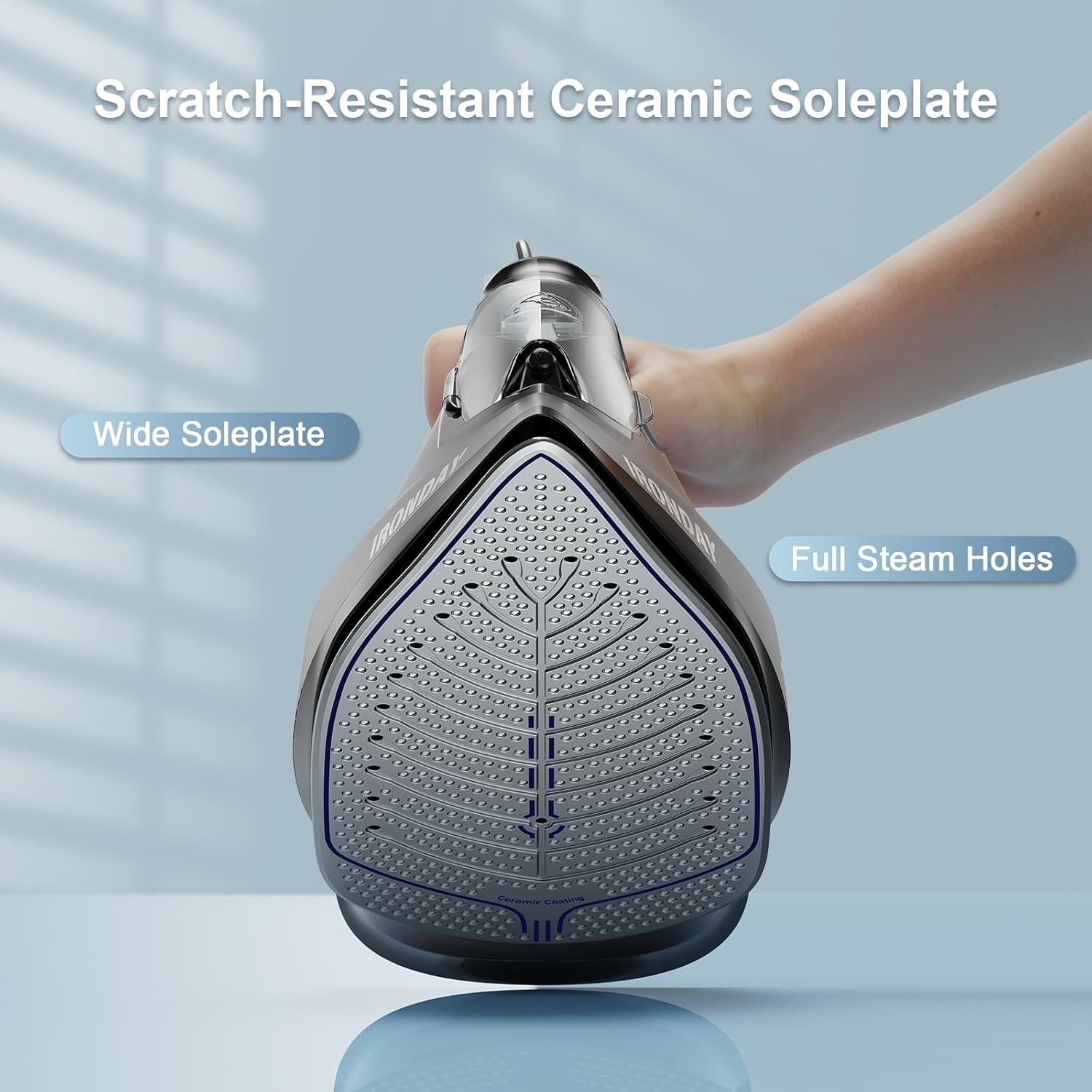 【1800W Powerful Iron】 The steam iron’s 1800W high-power engine can heat up in 20 seconds.And the non-stick ceramic soleplate provide even heat distribution for smooth ironing.
